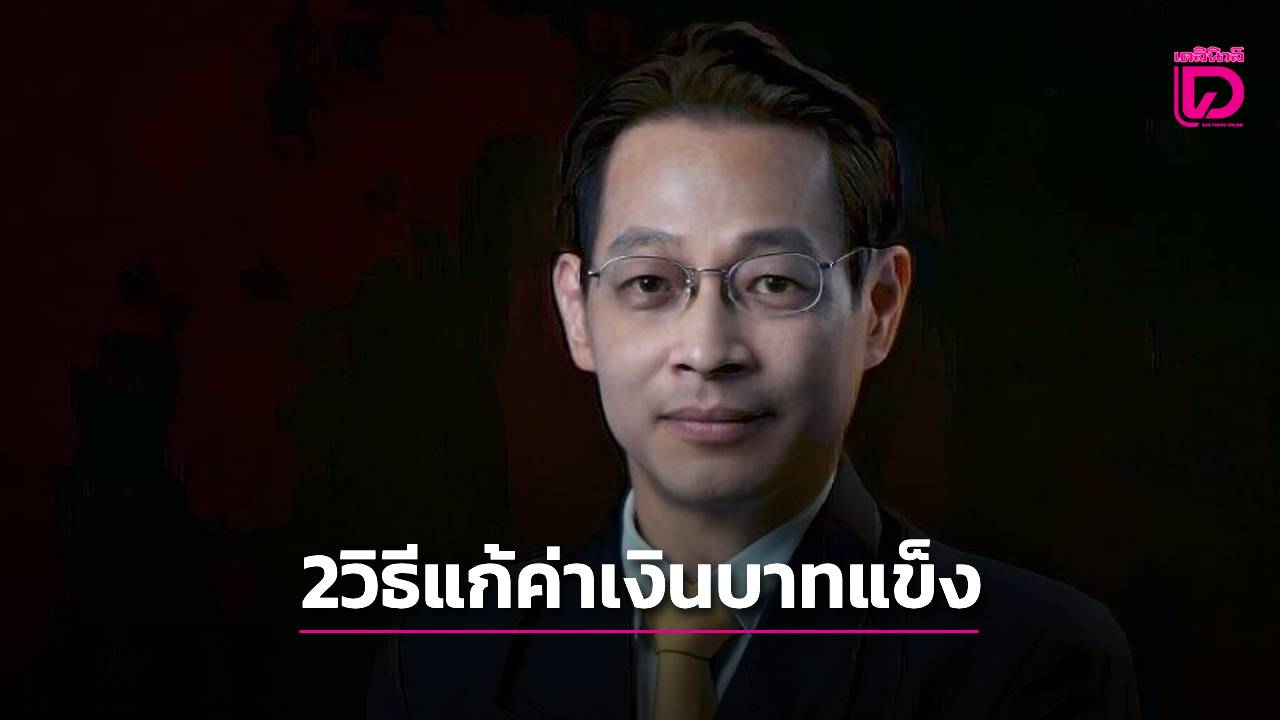 5.วิธีการแก้ไขเงินบาทแข็งค่ามากเกินไปคือ (ก) ให้เพิ่มปริมาณเงินบาทในระบบเศรษฐกิจไทยมากขึ้น (QE: Quantitative easing) เงินเฟ้อก็จะสูงขึ้นเท่าๆ กับเงินเฟ้อโลก ทำให้เงินบาทอ่อนค่าลง (ข) ออกกฎหมายกำหนดเป้าหมายอัตราแลกเปลี่ยน (Exchange rate targeting) โดยใช้กองทุนรักษาระดับอัตราแลกเปลี่ยนเป็นเครื่องมือ เมื่อเงินบาทแข็งค่ามากเกินไป เราสามารถสร้างเงินบาทเพิ่มขึ้น เพื่อนำไปไปซื้อเงินดอลลาร์ และเงินต่างประเทศที่สำคัญในตลาดเงิน เพื่อให้เงินบาทมีค่าเหมาะสม