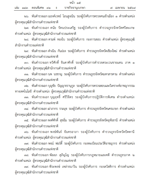 19. พันตํารวจเอก จักรภพ ท้าวฤทธิ์ รองผู้บังคับการ ตํารวจภูธรจังหวัดเลย ดํารงตําแหน่ง ผู้ทรงคุณวุฒิสํานักงานตํารวจแห่งชาติ
