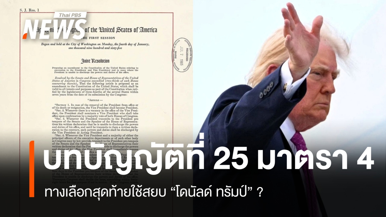 ที่มาข้อมูลเพิ่มเติม : Could the 25th Amendment be invoked against Trump? Here's how it works,‘Unhinged madman’: US politicians react to Trump’s expletive-laden threat to Iran,The 25th Amendment: Can Trump be declared unfit for office?,What to Know About the 25th Amendment as Lawmakers Call for Trump’s Removal