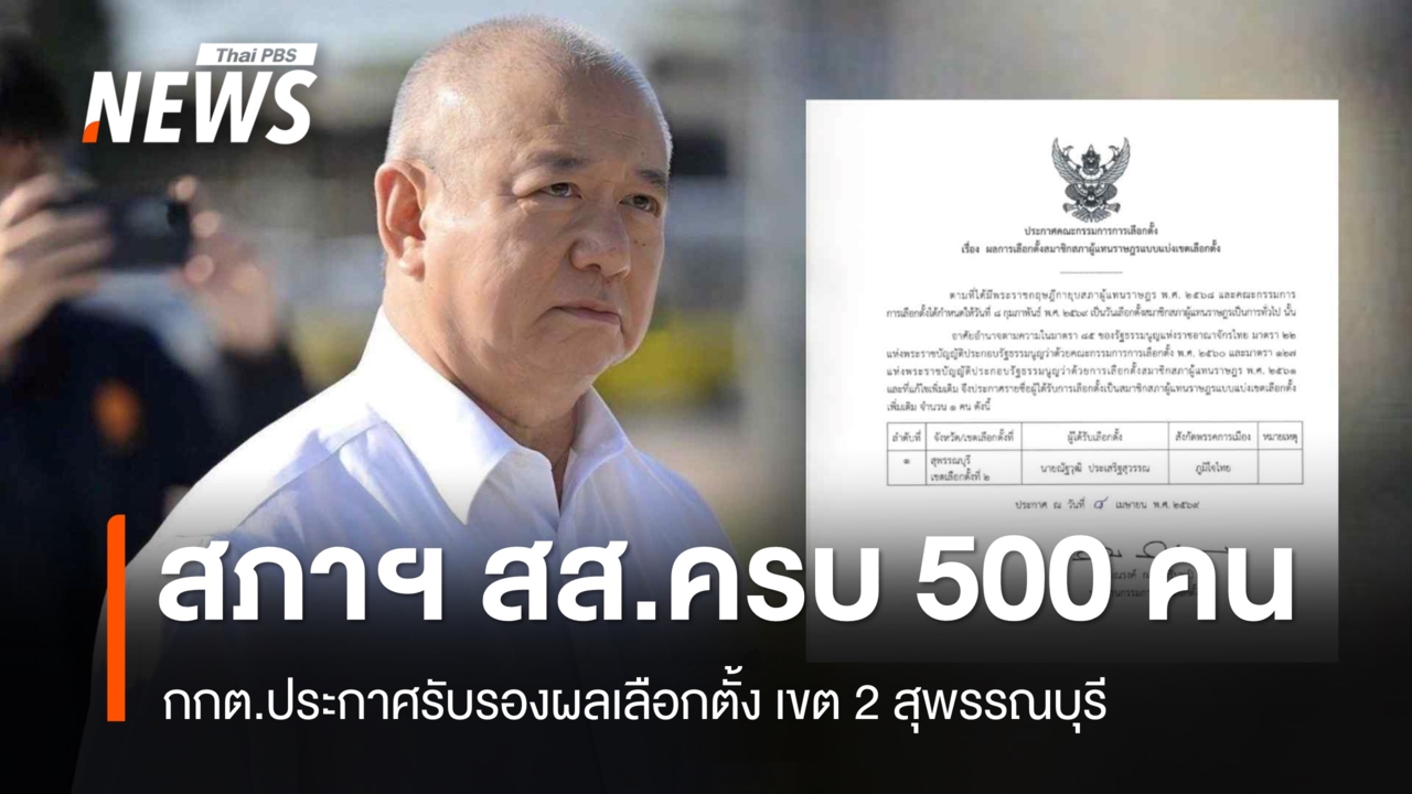 กกต. ประกาศรับรองผลการเลือกตั้ง "ณัฐวุฒิ ประเสริฐสุวรรณ" สส. เขต 2 สุพรรณบุรี แล้ว สภาฯ สส.ครบ 500 คนวันนี้ (8 เม.ย.2569) นายณรงค์ กลั่นวารินทร์ ประธานกรรมการการเลือกตั้ง ลงนามประกาศ กกต. เรื่องผลเลือกตั้งสมาชิกสภาผู้แทนราษฎรแบบเขตเลือกตั้ง โดยประกาศรายชื่อผู้ได้รับเลือกตั้งเป็น สส. เพิ่มเติม 1 คน คือ นายณัฐวุฒิ ประเสริฐสุวรรณ สส.สุพรรณบุรี เขต 2 พรรคภูมิใจไทย