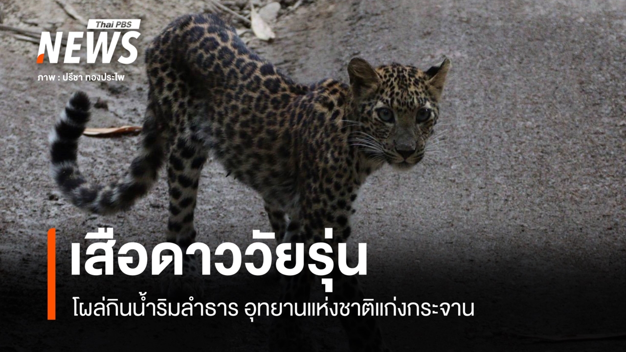 แก่งกระจาน เผยภาพ "เสือดาววัยรุ่น" โผล่กินน้ำริมลำธาร ผืนป่ามรดกโลก
